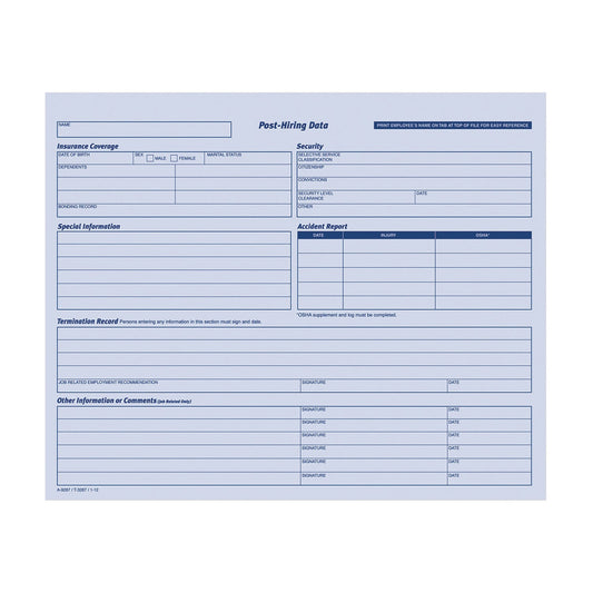 Adams® Employee Personnel File Jacket, Unpunched, Straight Tab, Letter Size, Blue, 20/Pack
