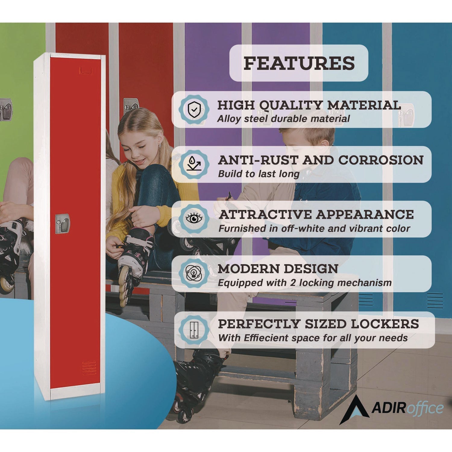 AdirOffice Steel Storage Locker, 1 Compartment, 12 x 12 x 72, Red